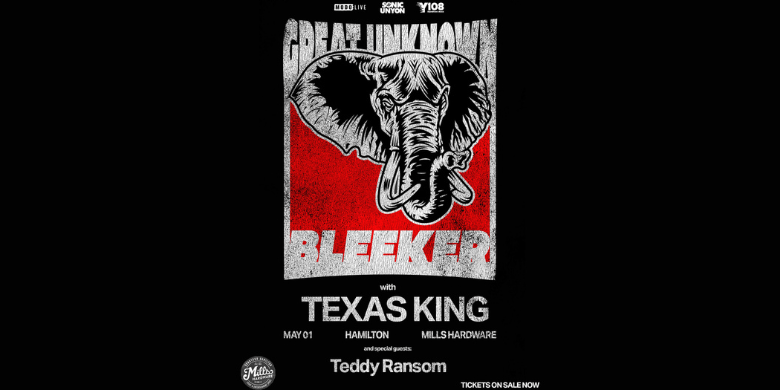 Bleeker with Texas King Where Mills Hardware, Hamilton Map When May 01/26 07:00 PM - May 01/26 11:00 PM Age All MODO-LIVE, Sonic Unyon & Y108 Present Bleeker with Texas King Mills Hardware | May 1, 2026 >> Get Your Tickets Here << Doors: 7:00pm Show: 8:00pm All Ages
